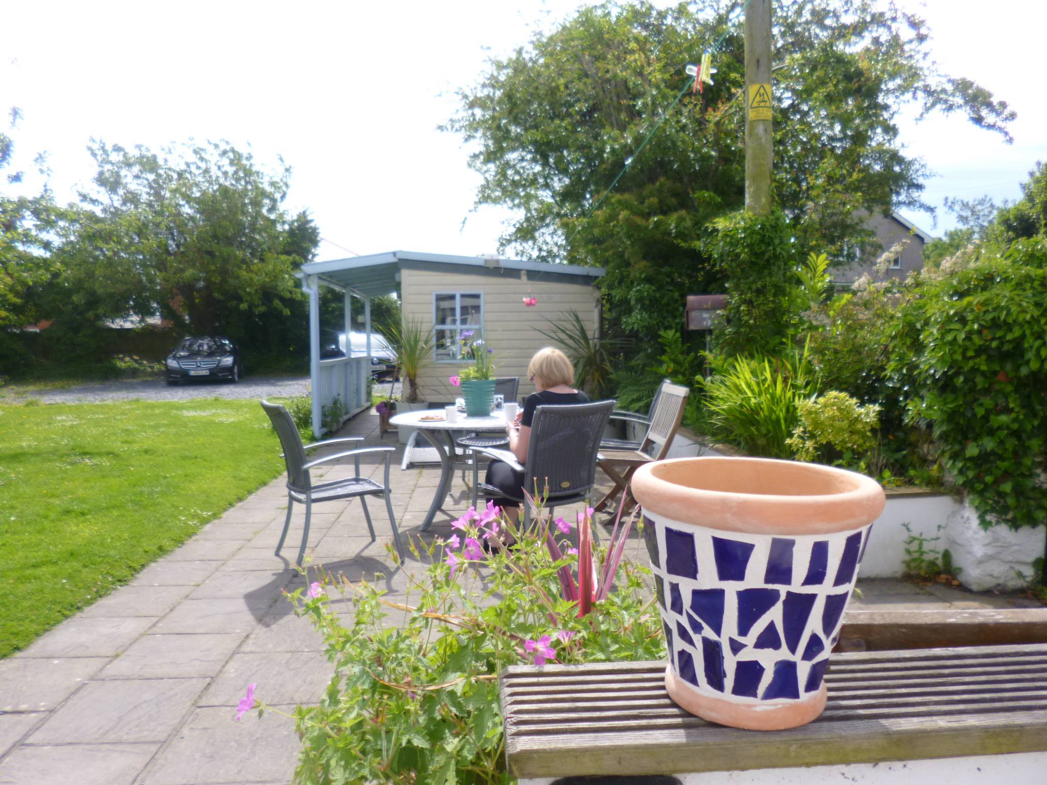 Pen Lon (The Gingerbread House) is situated in a quiet country lane signposted 'Rhoscefnhir' overlooking fields.